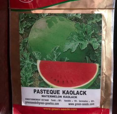 La pastèque Kaolack est une variété de pastèque populaire au Niger et dans les pays tropicaux d'Afrique, particulièrement adaptée aux zones chaudes. Caractéristiques principales : Cycle de culture : 80-85 jours. Poids des fruits : 5 à 6 kg. Forme : Sphérique: Couleur de peau : Vert clair finement veiné de vert moyen. Chair : Rouge, fine, croquante et très sucrée. Particularités agronomiques: Nature génétique : Population sélectionnée. Période de culture : Saison chaude. Rendement : Élevé. Résistance : Aux coups de soleil et à l'anthracnose. Densité de plantation : 300-500 g de semences à l'hectare. Avantages: Excellente adaptation aux climats chauds. Fruits uniformes et savoureux. Bon choix pour les jardins familiaux et les maraîchers. Précocité intéressante: La pastèque Kaolack est commercialisée par plusieurs semenciers comme Technisem, Green Seeds et Tropicasem.